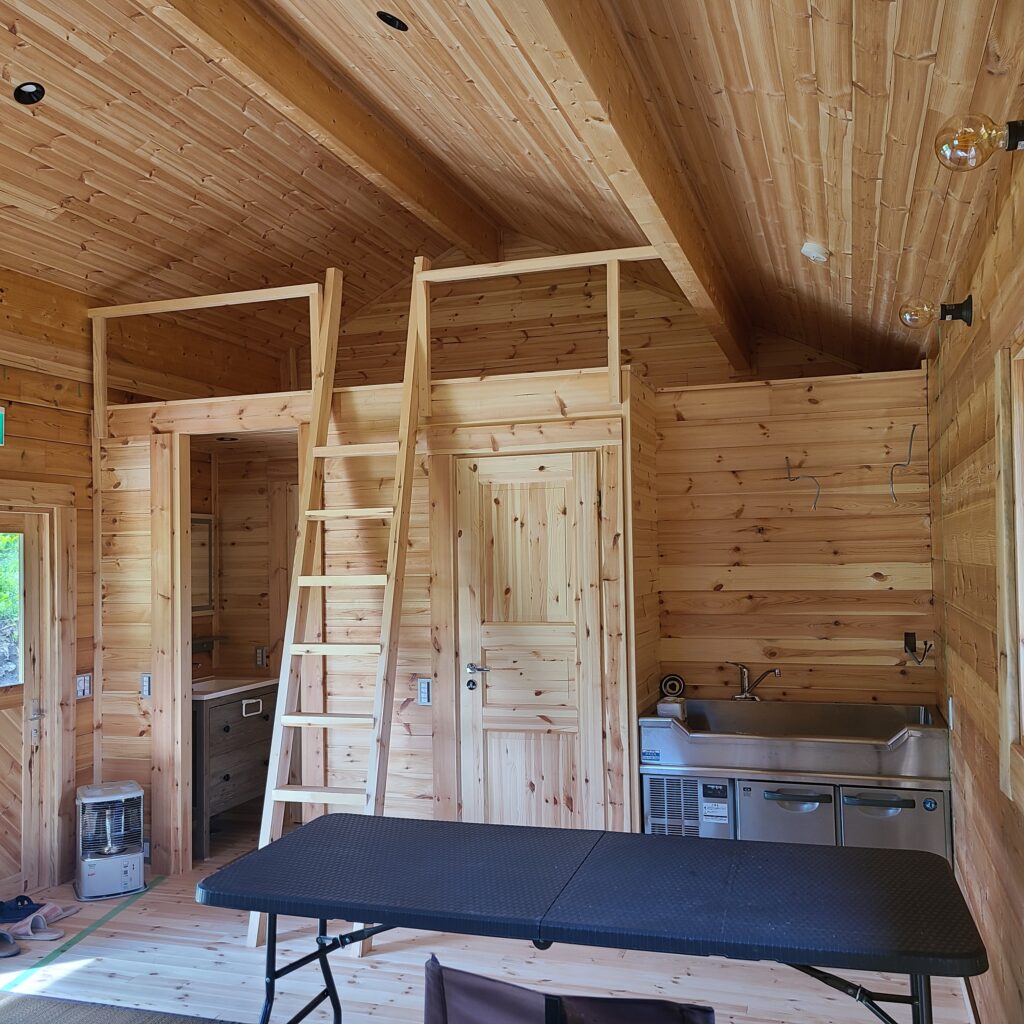 現在民泊できるのは管理棟のみとなっていますが、囲炉裏小屋とミニキャビンも民泊認可に向けて試運転仮稼働中ですので、近々民泊可能となる予定です。